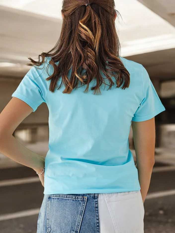 - Оригінальна жіноча блузка з круглим вирізом, виготовлена з м'якого та приємного на дотик матеріалу. Вся блузка прикрашена тонким написом, а короткий рукав надає легкості. Ідеальний вибір для створення модних та стильних образів!