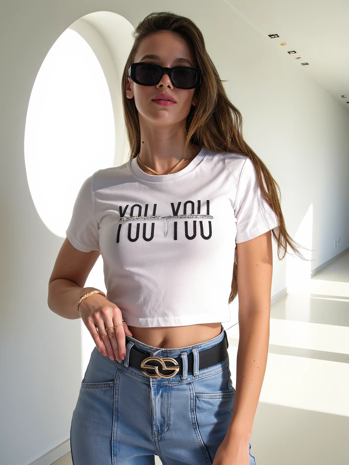 • Еластичний топ з короткими рукавами, виготовлений з приємного матеріалу. Модель має круглий виріз та оформлена написом. Ідеальна основа для багатьох повсякденних образів! ЗВЕРНІТЬ УВАГУ: Точність вимірювання (+/-) 1 см.