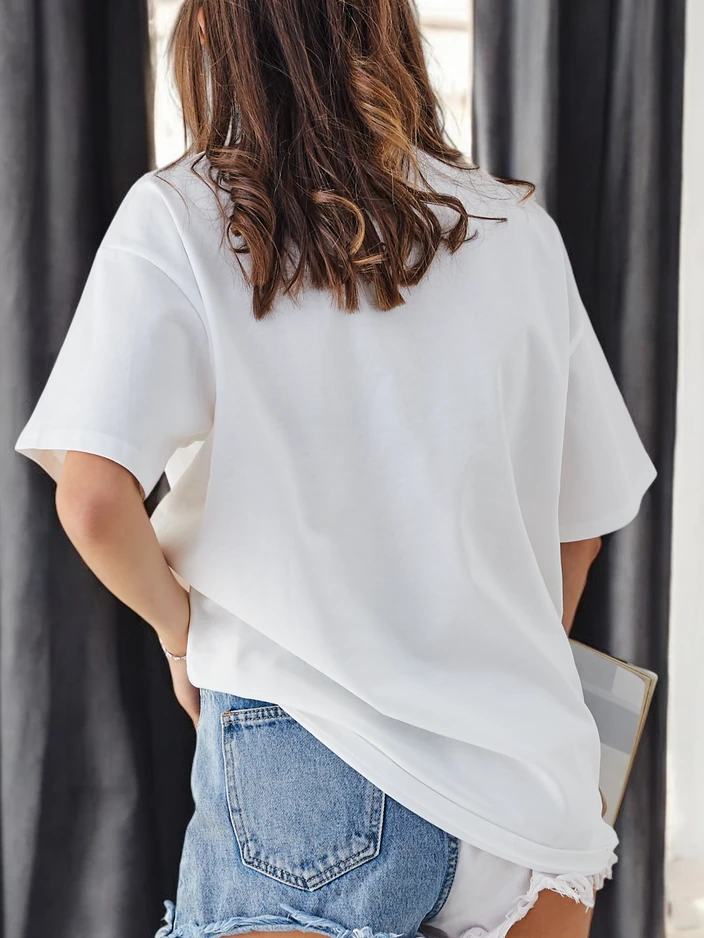 - Котонова жіноча футболка - легкий і комфортний варіант на кожен день. Натхненна стразами, вона ідеально підходить для повсякденних стилів. М’яка тканина забезпечує комфорт, а мінімалістичний дизайн робить її придатною для різних вбрань.