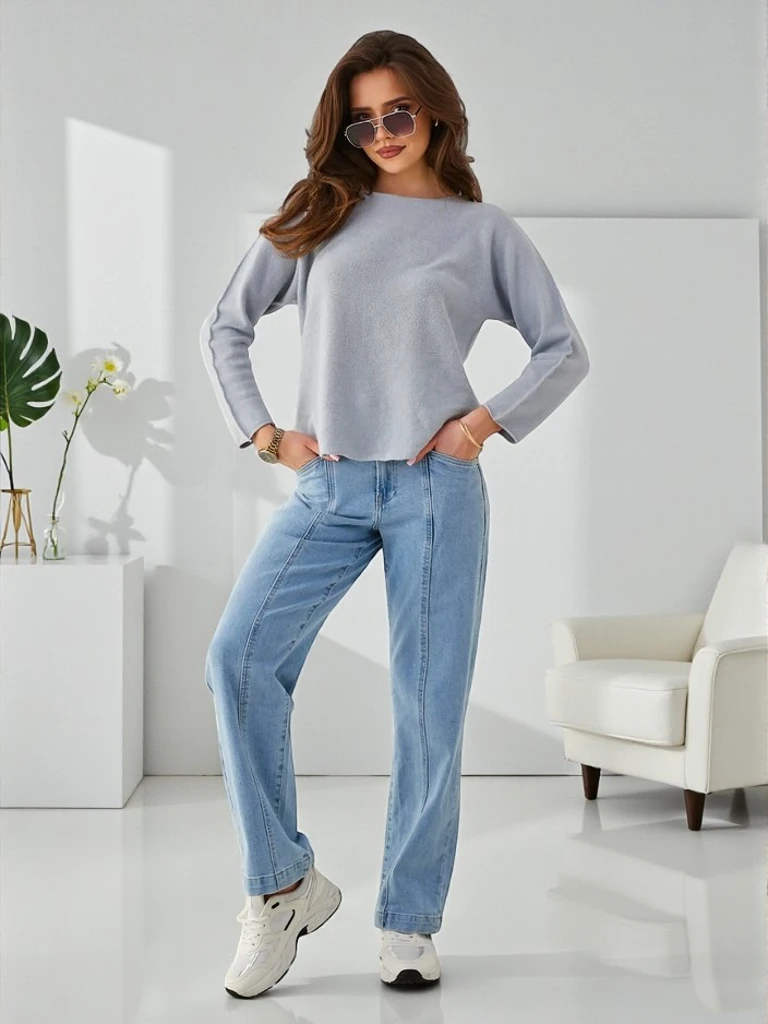 - Damski sweterek wykonany z lekkiej, wiskozowej tkaniny. Posiada długie rękawy i okrągły dekolt, zapewniając komfort i elegancję w codziennych stylizacjach. Dostępny w różnych kolorach, pozwala na łatwe dopasowanie do każdej garderoby!
