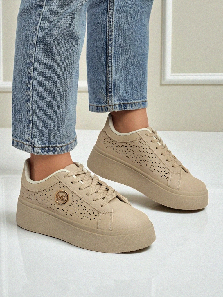 • Жіночі ажурні снікерси з екошкіри та тканинної устілки на платформі, що поєднують комфорт із модним стилем. Ідеальні на кожен день, забезпечують легкість і зручність, а витончений дизайн додає елегантності кожному образу.