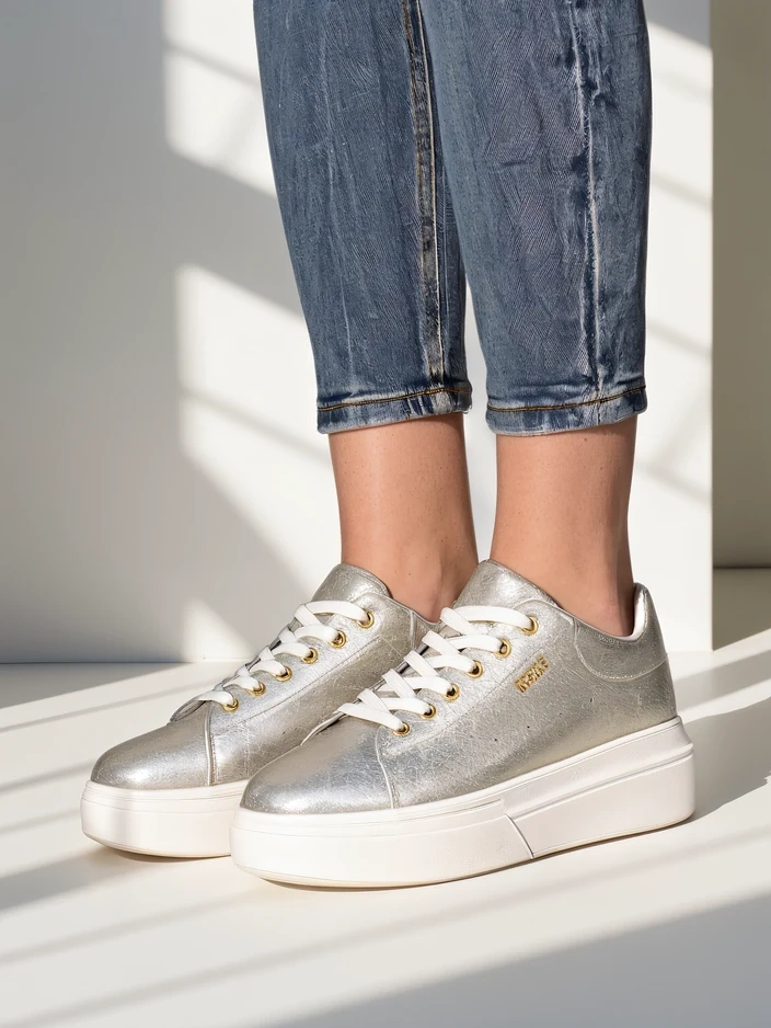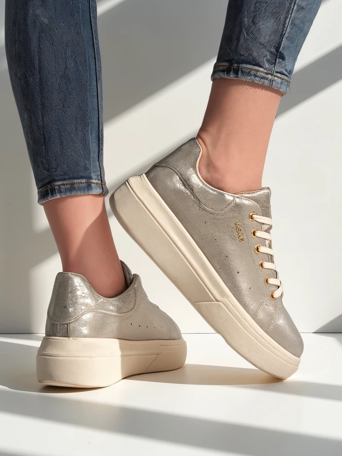 Снікерси Callista від Royalfashion – це унікальна пропозиція для жінок, які цінують комфорт і витончений стиль. Виготовлені з високоякісної екологічної шкіри, вони відрізняються естетичним оздобленням і довговічністю. Завдяки виробничому процесу, заснованому на суворому контролі якості та екологічно чистих технологіях, це взуття не тільки чудово виглядає, але й прослужить багато сезонів. Повітропроникна текстильна устілка та зовнішня тканина забезпечують відчуття свіжості та комфорту протягом усього дня. Особливістю моделі Callista є міцна, плоска підошва висотою 4,5 см, яка гарантує стабільність і високий комфорт при носінні, навіть під час тривалих прогулянок або активного дня. Круглий носок і класична шнурівка роблять снікерси зручними на нозі, адаптуючись до її форми. Відсутність візерунка та однотонне чорне забарвлення з контрастним задником – ідеальна основа для багатьох стилізацій. Взуття чудово вписується в сучасні тенденції – мінімалістичний дизайн, висока підошва та універсальність роблять його обов'язковим елементом гардеробу на весну, літо та осінь. Стилістично ви можете поєднувати їх різними способами: 1. Повсякденний образ – поєднайте снікерси зі світлими джинсами-скінні та простою футболкою, створивши зручний комплект на кожен день. 2. Streetwear – поєднайте з короткою сукнею або спідницею міді та оверсайз піджаком, підкреслюючи міський шик. 3. Спортивна елегантність – одягніть з легінсами та толстовкою з капюшоном, ідеально підходять для вихідних прогулянок або покупок. Догляд за снікерсами Callista дуже простий – достатньо протирати їх вологою ганчіркою з додаванням м'якого миючого засобу та сушити подалі від джерел тепла. Також рекомендується використовувати засоби для догляду за екологічною шкірою, щоб зберегти їх свіжість і еластичність матеріалу. Ця модель відповідає сучасним тенденціям міської моди, де панує зручне, виразне взуття на платформі, яке ефективно підкреслює індивідуальний стиль і додає впевненості в собі кожній стилізації. Снікерси Callista Royalfashion – чудовий вибір для активних жінок, які цінують сучасну класику.