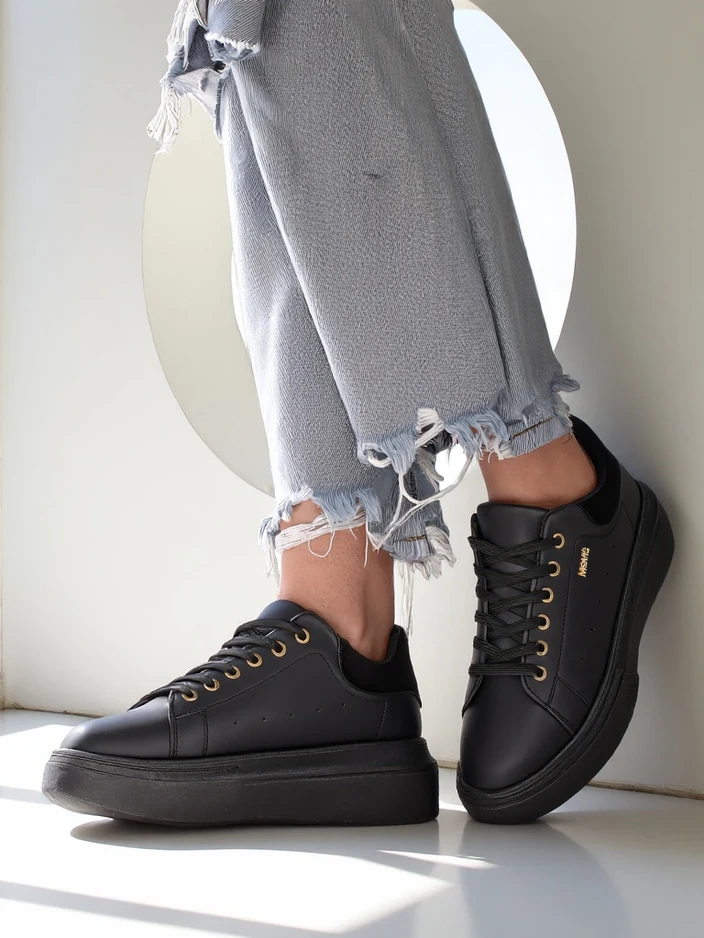 Снікерси Callista від Royalfashion – це унікальна пропозиція для жінок, які цінують комфорт і витончений стиль. Виготовлені з високоякісної екологічної шкіри, вони відрізняються естетичним оздобленням і довговічністю. Завдяки виробничому процесу, заснованому на суворому контролі якості та екологічно чистих технологіях, це взуття не тільки чудово виглядає, але й прослужить багато сезонів. Повітропроникна текстильна устілка та зовнішня тканина забезпечують відчуття свіжості та комфорту протягом усього дня. Особливістю моделі Callista є міцна, плоска підошва висотою 4,5 см, яка гарантує стабільність і високий комфорт при носінні, навіть під час тривалих прогулянок або активного дня. Круглий носок і класична шнурівка роблять снікерси зручними на нозі, адаптуючись до її форми. Відсутність візерунка та однотонне чорне забарвлення з контрастним задником – ідеальна основа для багатьох стилізацій. Взуття чудово вписується в сучасні тенденції – мінімалістичний дизайн, висока підошва та універсальність роблять його обов'язковим елементом гардеробу на весну, літо та осінь. Стилістично ви можете поєднувати їх різними способами: 1. Повсякденний образ – поєднайте снікерси зі світлими джинсами-скінні та простою футболкою, створивши зручний комплект на кожен день. 2. Streetwear – поєднайте з короткою сукнею або спідницею міді та оверсайз піджаком, підкреслюючи міський шик. 3. Спортивна елегантність – одягніть з легінсами та толстовкою з капюшоном, ідеально підходять для вихідних прогулянок або покупок. Догляд за снікерсами Callista дуже простий – достатньо протирати їх вологою ганчіркою з додаванням м'якого миючого засобу та сушити подалі від джерел тепла. Також рекомендується використовувати засоби для догляду за екологічною шкірою, щоб зберегти їх свіжість і еластичність матеріалу. Ця модель відповідає сучасним тенденціям міської моди, де панує зручне, виразне взуття на платформі, яке ефективно підкреслює індивідуальний стиль і додає впевненості в собі кожній стилізації. Снікерси Callista Royalfashion – чудовий вибір для активних жінок, які цінують сучасну класику.