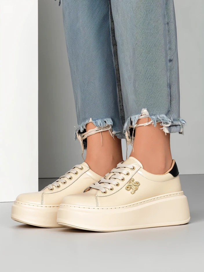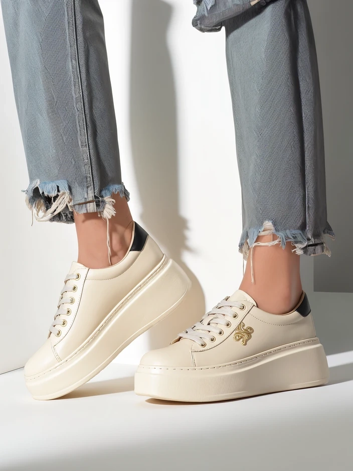 • Жіночі спортивні черевики, виготовлені повністю з натуральної шкіри. Модель на платформі. Шнурківний верх. Вони чудово підходять до повсякденних образів!