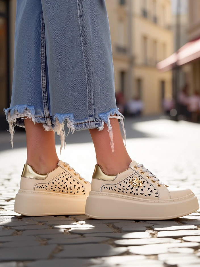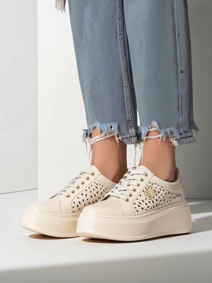 - Перфоровані еко-шкіряні жіночі платформи - ідеальне поєднання стилю та комфорту. Модель на шнурівці з натуральною шкіряною устілкою. Ідеально підходить для активних людей!