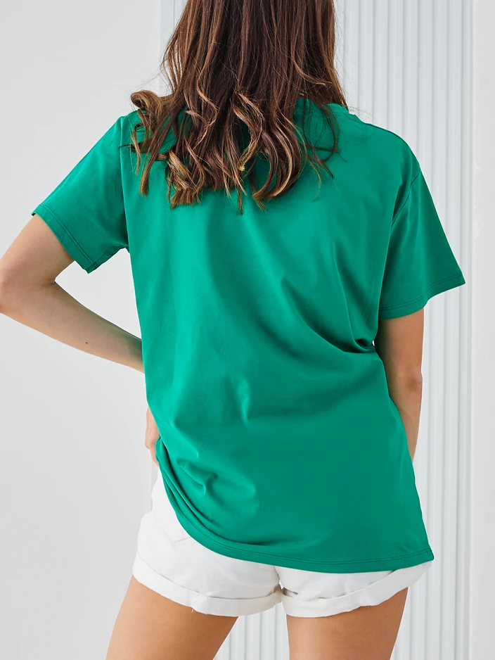 • Жіноча бавовняна футболка - легкий і зручний варіант для повсякденного носіння. Натхненна позитивним слоганом, вона ідеально підходить для повсякденного стилю. М'яка тканина забезпечує комфорт, а мінімалістичний дизайн робить її придатною для різних вбран