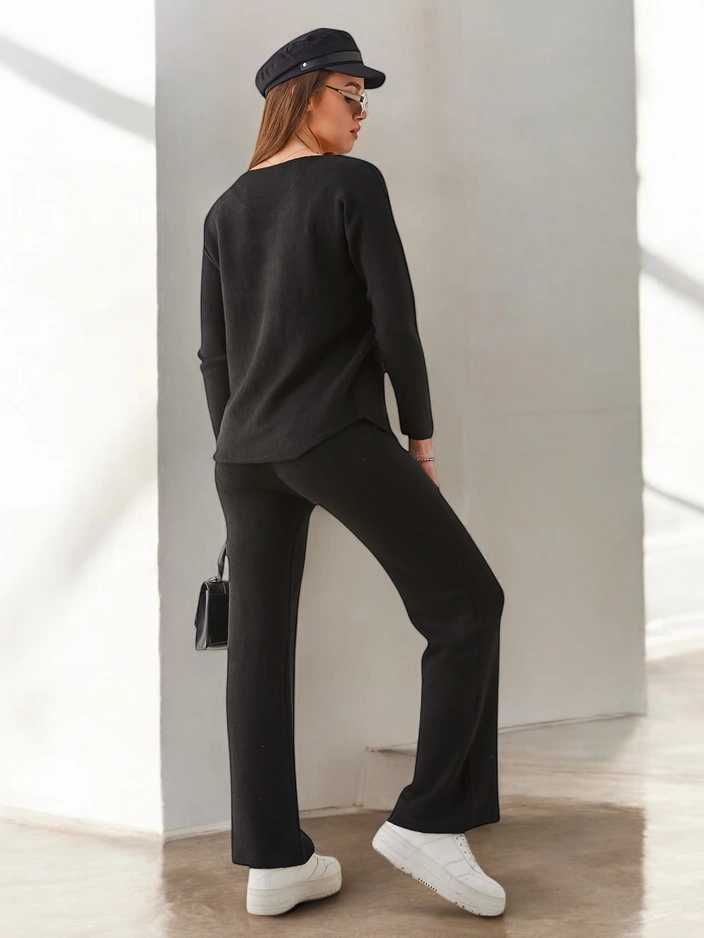 - Жіночий комплект светрів з приємної тканини. Светр з V-подібним вирізом, має довгі рукави. Широкі штани з еластичним поясом. Обов'язковий елемент цього сезону! ЗАУВАЖЕННЯ: Точність вимірювань (+/-) 1 см.