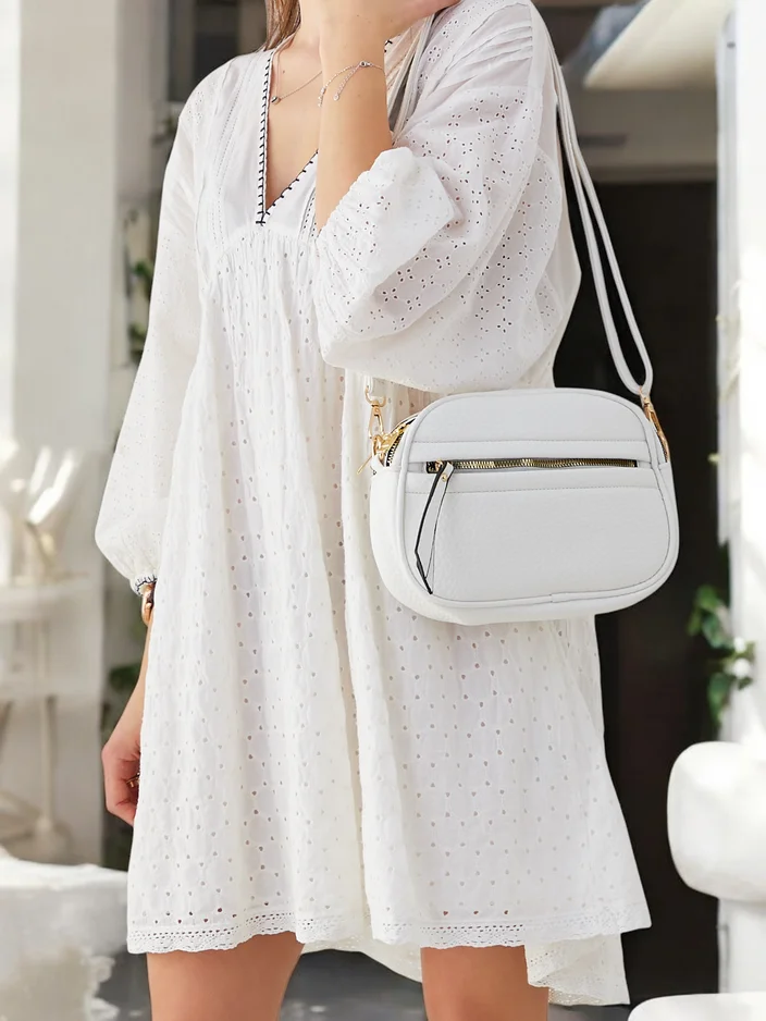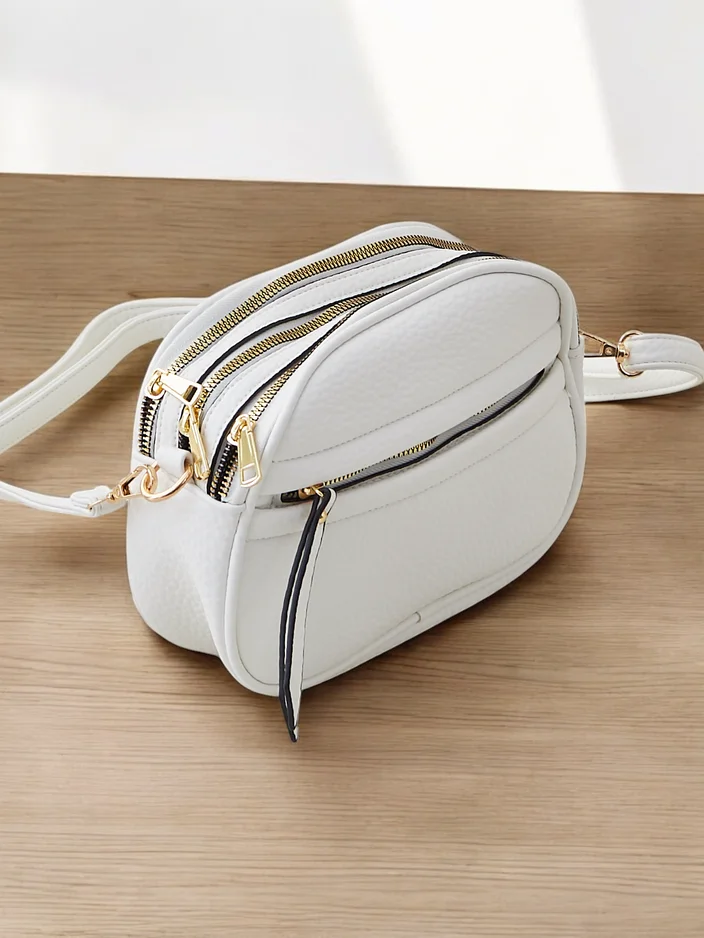 • Жіноча овальна сумка з блискавкою, виготовлена з еко-шкіри. Модель має 3 відділення та одну зовнішню кишеню. Додатково оснащена відстібним регульованим ремінцем. Ідеально підходить для повсякденного використання!