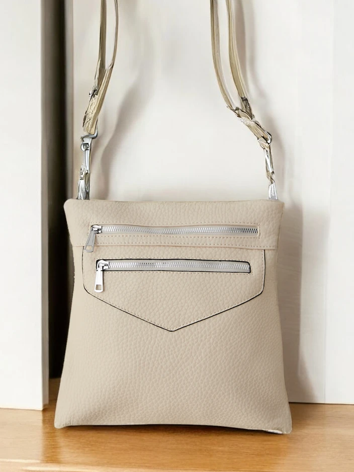 - Жіноча сумка з блискавкою, виготовлена з екологічної шкіри. Модель має 1 відділення, 3 внутрішні кишені та 2 зовнішні кишені. Крім того, вона має регульований ремінець. Ідеально підходить для повсякденного використання!