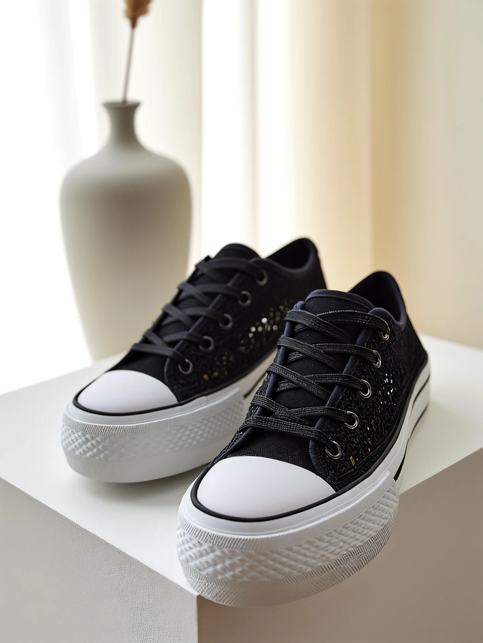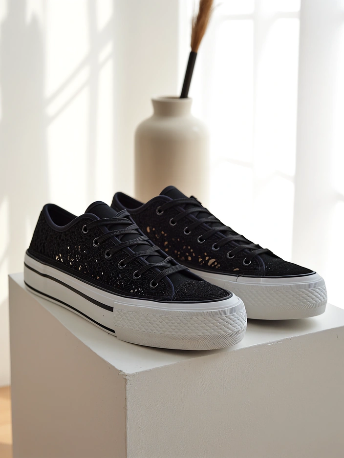 Aureliana - це надзвичайно стильні жіночі кеди, виготовлені з високоякісної тканини, спеціально розроблені для жінок, які люблять комфорт і винятковий, модний вигляд. Верх цих туфель пошитий з повітропроникної ажурної тканини, що забезпечує чудову циркуляцію повітря і комфорт навіть у теплі літні дні. Цей матеріал - високоякісний текстиль, який характеризується як міцністю, так і ніжністю до шкіри. Внутрішня устілка також виготовлена з м'якої текстильної тканини, що забезпечує додатковий комфорт і амортизацію. Плоский каблук і товстіша, еластична підошва висотою 2,5 см гарантують стабільність і підтримку під час щоденних прогулянок або зустрічей. Ці кеди - ідеальна пропозиція для жінок, які цінують міський стиль і комфорт на кожен день. Переваги використання цих кедів - це, перш за все, легкість і повітропроникність конструкції. Темно-синій колір робить взуття чудовим доповненням до багатьох стилів. Делікатний ажурний візерунок додає їм витонченості і робить їх легкими та жіночними. Пропозиції стилізації: 1. Повсякденний стиль зі світлими джинсами-бойфрендами, білою футболкою і легкою джинсовою курткою на прохолодні дні. 2. Спідниця міді з квітковим візерунком і легка блузка - ідеальний вибір для весняної прогулянки або зустрічі з подругою. 3. Шорти та сорочка оверсайз, зав'язана на талії, - чудова пропозиція для літніх прогулянок містом або на пляж. Чищення та догляд: кеди слід чистити м'якою щіткою і теплою водою з м'яким миючим засобом. Не слід прати їх у пральній машині або сушити під прямими сонячними променями, щоб зберегти початкову структуру тканини. Зберігати в сухому і провітрюваному місці. Актуальні тенденції: ажурні кеди в інтенсивних, глибоких кольорах, таких як темно-синій, зараз є однією з найгарячіших тенденцій сезону весна-літо. Жінки все частіше обирають взуття, яке не тільки зручне, але й вирізняється оригінальними, обробленими вручну деталями. Модель Aureliana поєднує в собі всі ці риси, що робить її ідеальним вибором для сучасних жінок, які цінують стиль і комфорт.
