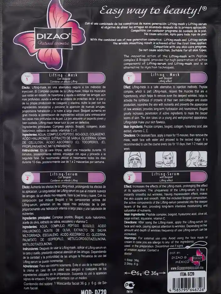 DIZAO - Набір сироватки та маски з золотом 6г+36г x 10шт