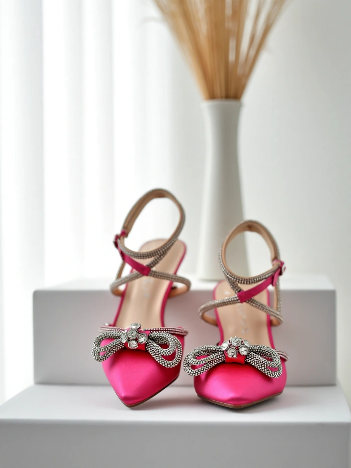 - жіночі туфлі на шпильці без підборів. Модель виконана з сатинової тканини і має еко-шкіряне устілку. Загострений носок надає їм чуттєвої елегантності. Носіть їх з елегантною сукнею!