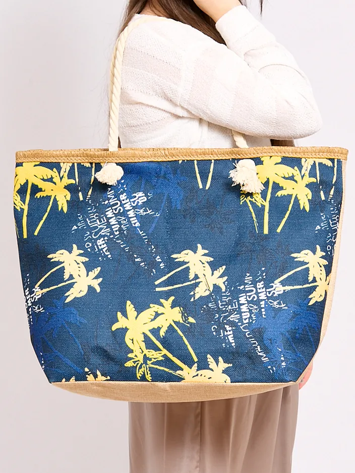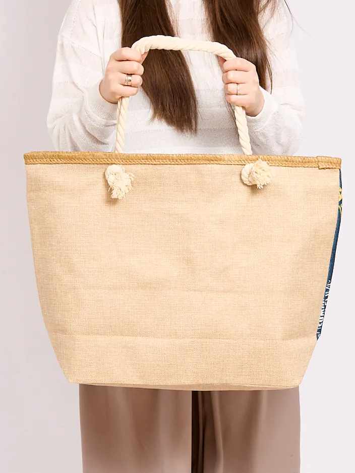 - Стильна тканинна сумка, оздоблена принтом. Сумка має довші ручки, закривається на замок і має 1 кишеню всередині. Вона буде чудовою для пляжу!