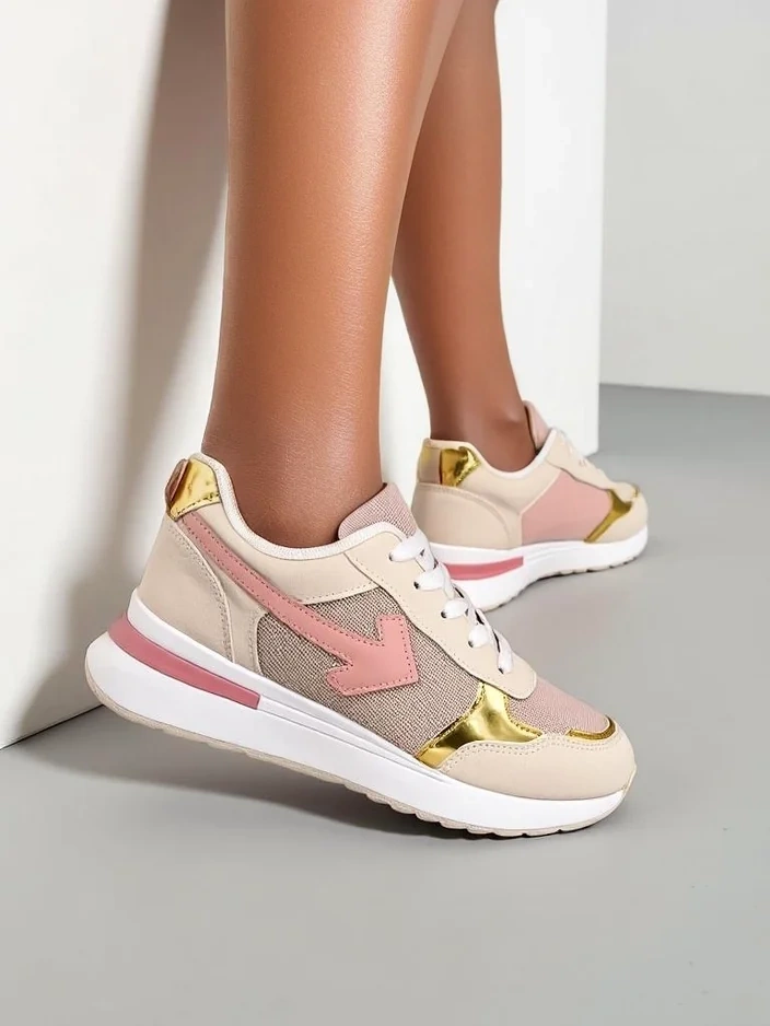 • Стильне взуття для жінок - ідеальний вибір для повсякденного носіння! Верхня частина виготовлена з комбінації еко-шкіри та блискучої тканини, з текстильною устілкою усередині. Ці жіночі спортивні кросівки чудово підійдуть як до джинсів, так і до спортивни