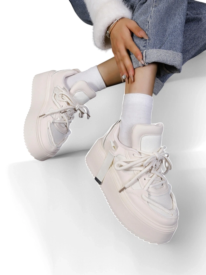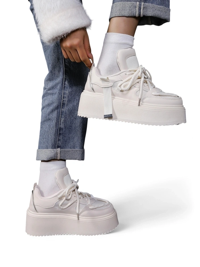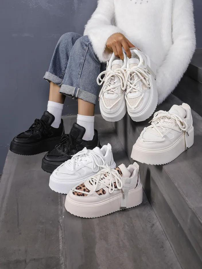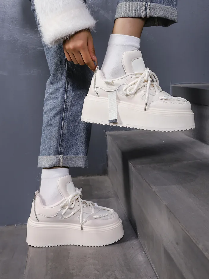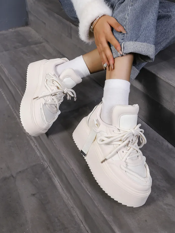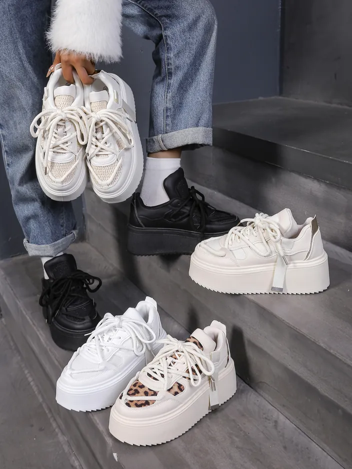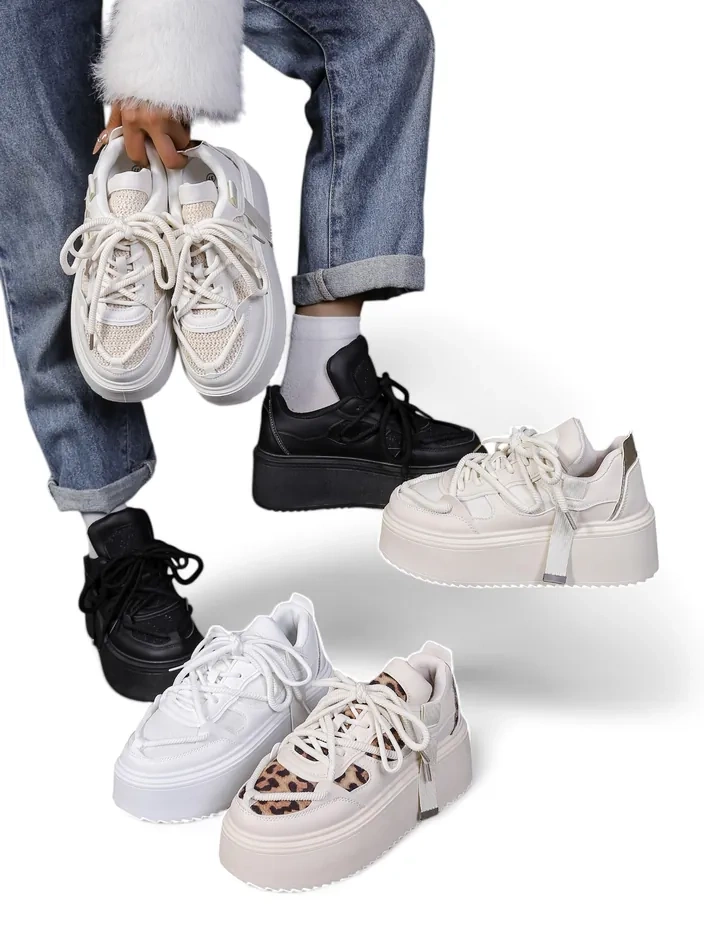 • Жіночі платформи кросівки - ідеальне поєднання стилю та комфорту. Взуття виготовлене з еко-шкіри. Модель на шнурівці з текстильною устілкою. Ідеально підходить для активних людей!