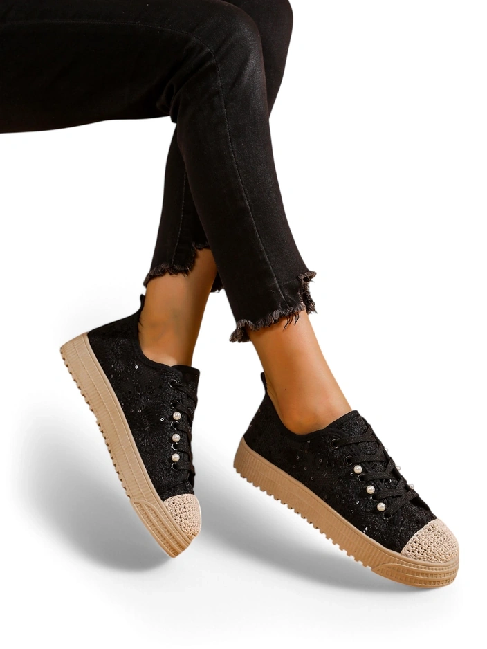 Royalfashion Жіночі кросівки з мереживом та паєтками Nille