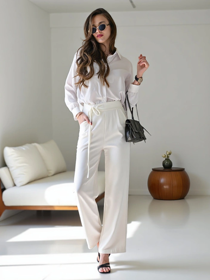 - Вражаючі широкі штани з легкого матеріалу, модель має 2 кишені та еластичний зав waistband. Додатково, є зав'язка з боків. Обов’язкова річ у вашому гардеробі! Примітка: Точність вимірювання (+/-) 1 см.