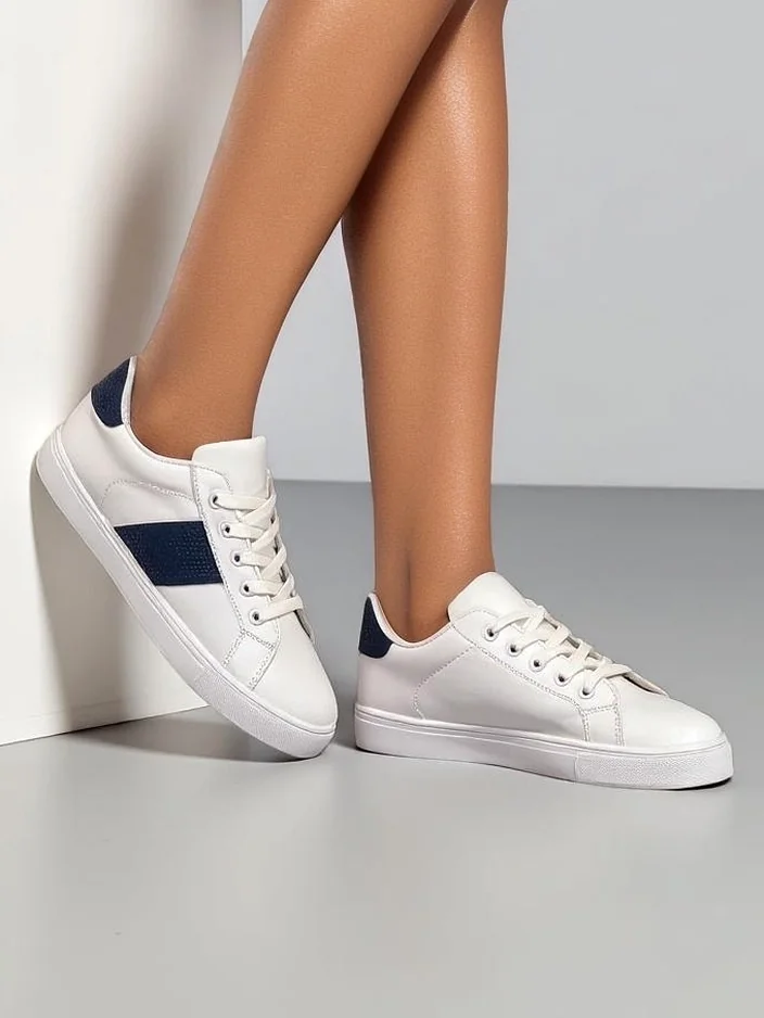 - Кросівки для жінок на плоскій підошві - ідеальне поєднання стилю та комфорту. Взуття виготовлене з еко-шкіри. Модель на шнурках, з текстильною устілкою. Ідеально підходить для активних людей!