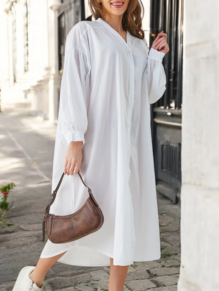 - Класична довга жіноча сорочка а'ла плаття, виготовлена з приємної тканини. Має V-подібний виріз та довгі рукави. Простий крій забезпечує гарну посадку для будь-якої силуету! ЗАУВАЖЕННЯ: Точність вимірювань (+/-) 1 см.