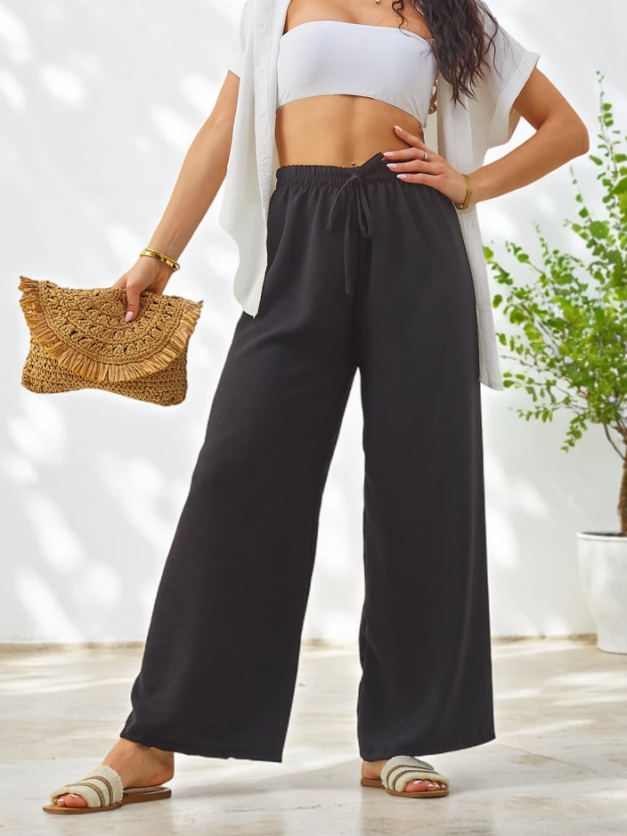 - Чудові широкі штани з легкого матеріалу, модель має 2 кишені та еластичний пояс. Обов'язкова річ у вашому гардеробі! ЗАУВАЖЕННЯ: Точність вимірювання (+/-) 1 см.