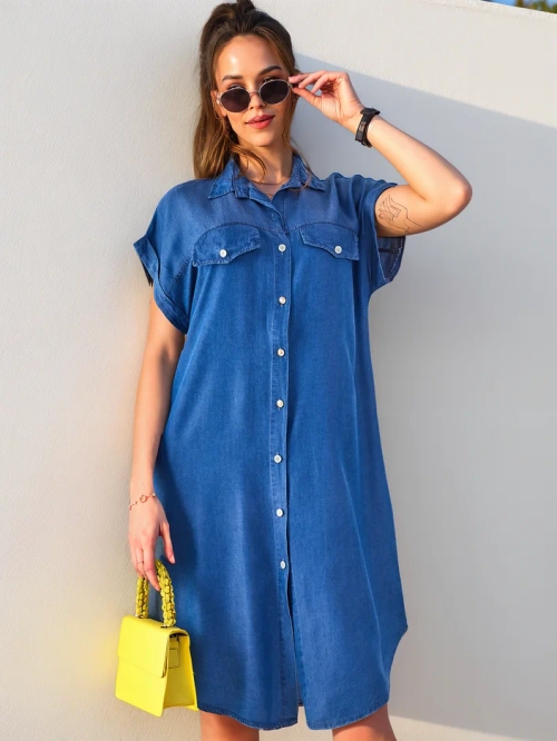Royalfashion Блузка-сукня з коротким рукавом для жінок типу денім