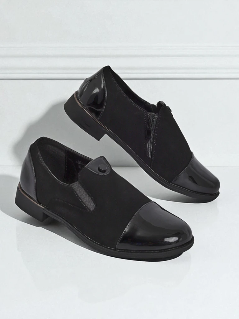 Зустрічайте Aurelia Nero – унікальні жіночі туфлі Royalfashion, які поєднують в собі класику, зручність і останні тенденції сезону. Взуття виготовлене з високоякісної екологічної шкіри матової та лакованої шкіри, завдяки чому набуває сучасного характеру при повній екологічності. Ретельне виконання та увага до деталей гарантують довговічність продукту, а технологія, використана в процесі виробництва, забезпечує комфорт носіння навіть протягом усього дня. Устілка та внутрішня частина також виготовлені з екологічної шкіри, що підвищує комфорт і гігієну використання. Виняткові переваги моделі Aurelia Nero - це плоский 2,5-сантиметровий каблук, круглий носок і практичний фасон без застібок - завдяки цьому їх легко взувати, а взуття ідеально тримається на нозі. Чорні туфлі надзвичайно універсальні, ідеальні для жінок, які цінують моду, комфорт і етичний вибір. Відсутність додаткових прикрас дозволяє вільно стилізувати їх відповідно до власних уподобань. ### Ідеї для стилізації: 1. Міський шик – поєднайте туфлі Aurelia Nero з сигаретками, білою сорочкою та піджаком oversize для ділових зустрічей і повсякденних виходів. 2. Casual на кожен день – носіть їх з джинсами mom fit, простою футболкою та плетеною сумкою через плече, створюючи недбалий образ для покупок або прогулянки містом. 3. Жіночна елегантність – поєднайте туфлі з розкльошеною сукнею міді та косухою для збалансування стилю між класикою та сучасністю. ### Догляд та зберігання: Взуття найкраще чистити м’якою вологою тканиною, уникати миючих засобів, що містять спирт, і тривалого контакту з водою. Під час зберігання варто використовувати оригінальну коробку або бавовняні мішечки, щоб захистити від деформацій. Регулярне провітрювання взуття продовжує термін його служби. ### Тренди: Чорні туфлі на плоскій підошві з екошкіри - це найсвіжіший тренд ВЕСНА/ЛІТО - цінуються за універсальність, комфорт і мінімалістичну елегантність, ідеально вписуючись в стиль як класичний, так і сучасний.