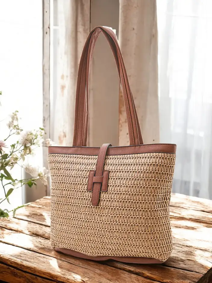 - Велика жіноча сумка з плетеного соломи. Модель на блискавці, має 1 основний відділ та 1 додатковий кишеню. Ідеальний аксесуар для літніх образів!