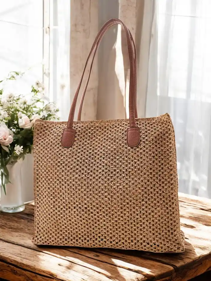 - Велика жіноча солом'яна сумка на літо - ідеальний вибір для теплих днів. Легка і простора, вона підходить для пляжу, відпусток або щоденних прогулянок, додаючи нотку літнього шарму до будь-якого вбрання. Вона має