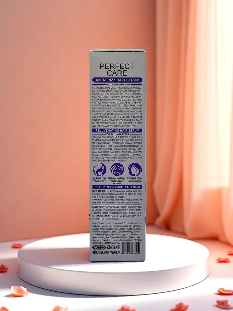 - Сироватка для волосся Perfect Care з біотином в упаковці об'ємом 120 мл прискорює ріст, робить волосся густішим та ефективно запобігає його випадінню, забезпечуючи здоровий вигляд та міцнішу структуру.