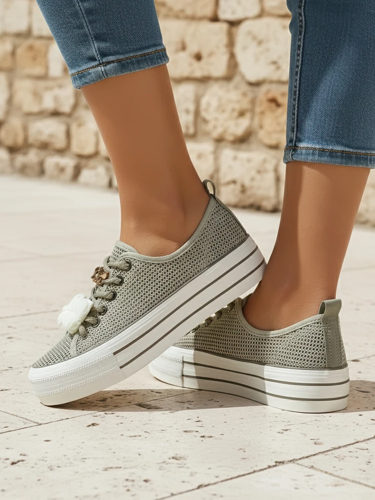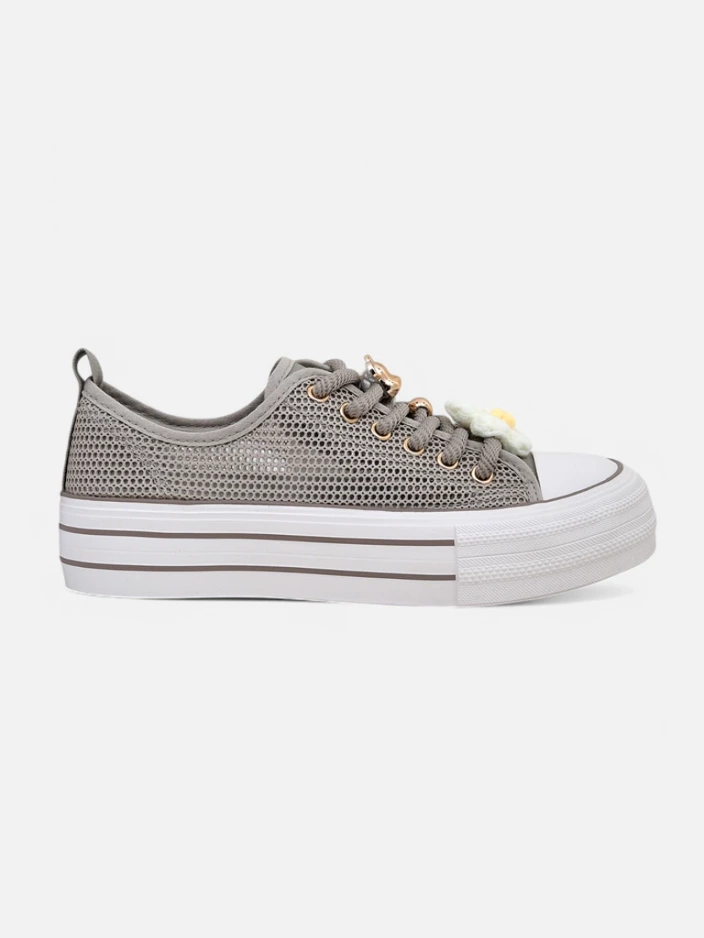 - Перфораційні кросівки з тканини, внутрішня частина також обшита матеріалом. Дуже зручні завдяки гумовій підошві. Взуття підходить до багатьох повсякденних образів!