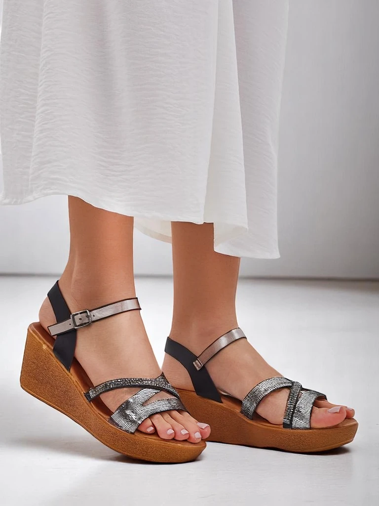 Royalfashion Жіночі сандалі на платформі з кристалами та блискітками Eclat