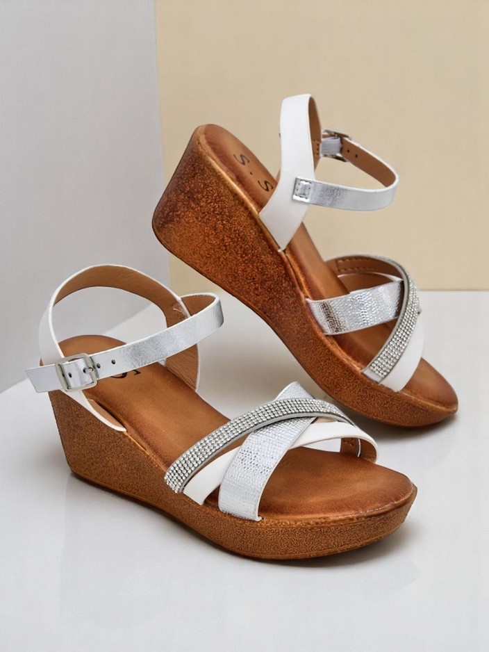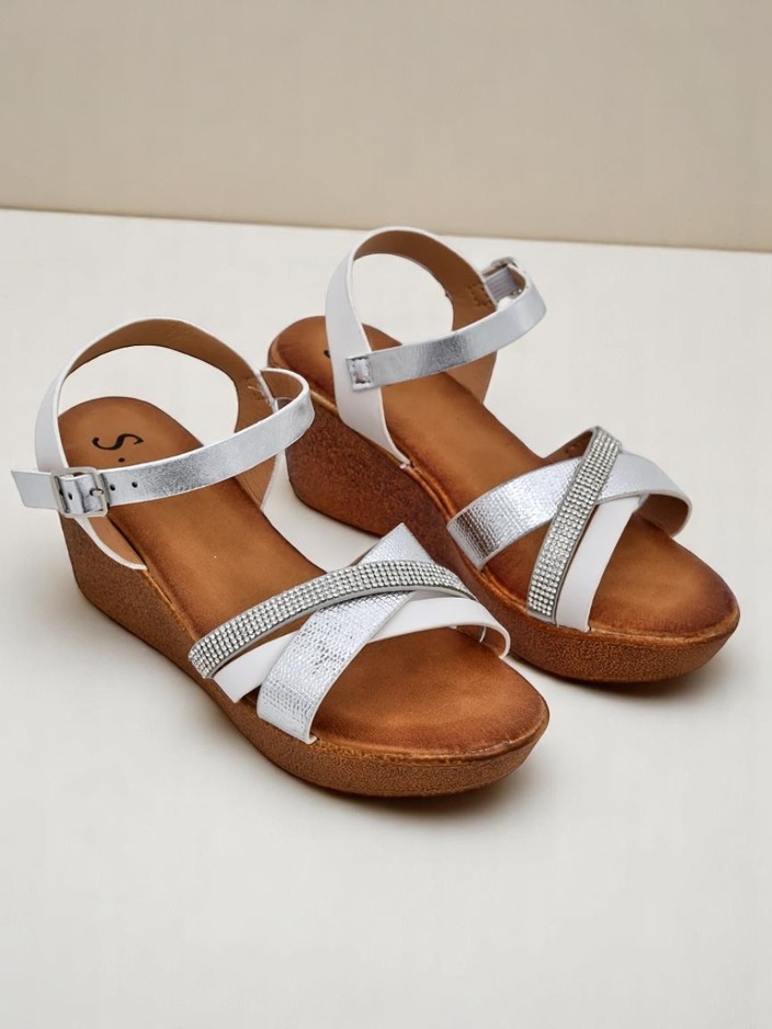 • Відкрийте елегантність з сандалями Glittera. Феноменальний дизайн танкетки, прикрашений блискучими стразами та ніжними блискітками, ідеально підкреслює літнє сяйво. Поєднання комфорту та розкішного вигляду – ідеально для кожної особливої нагоди!