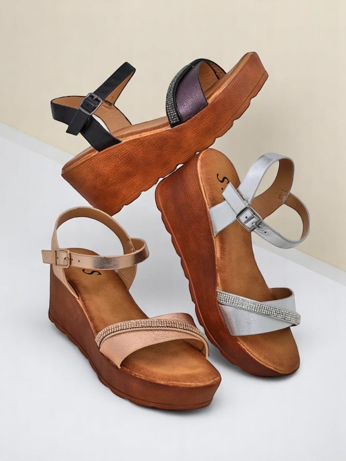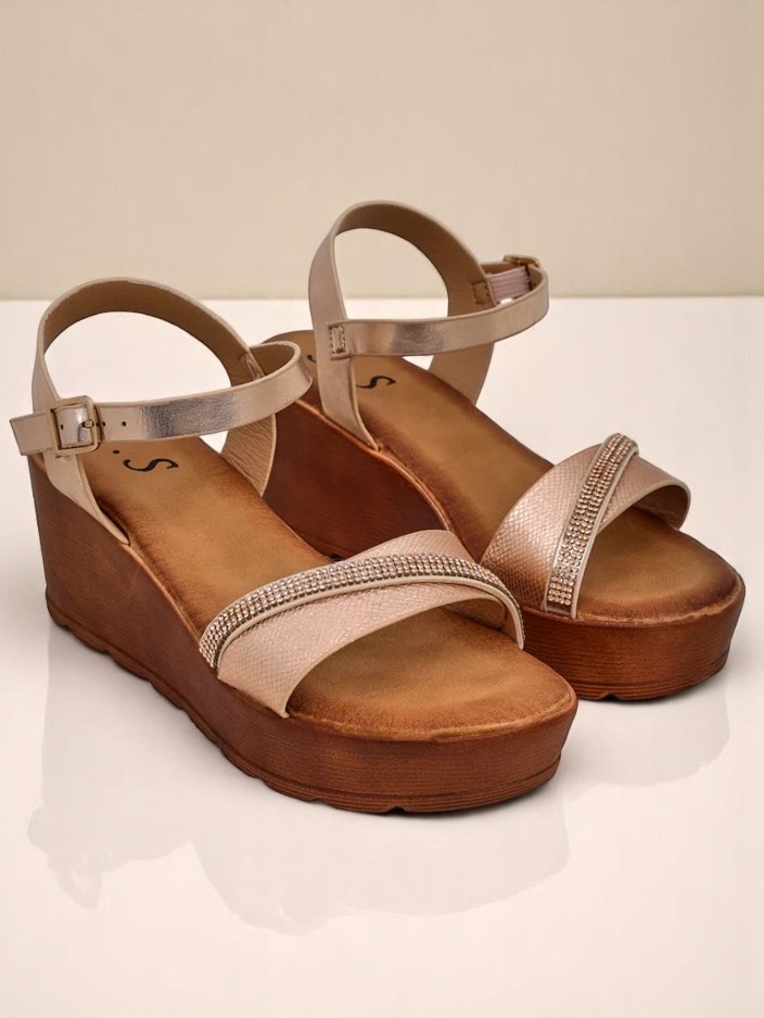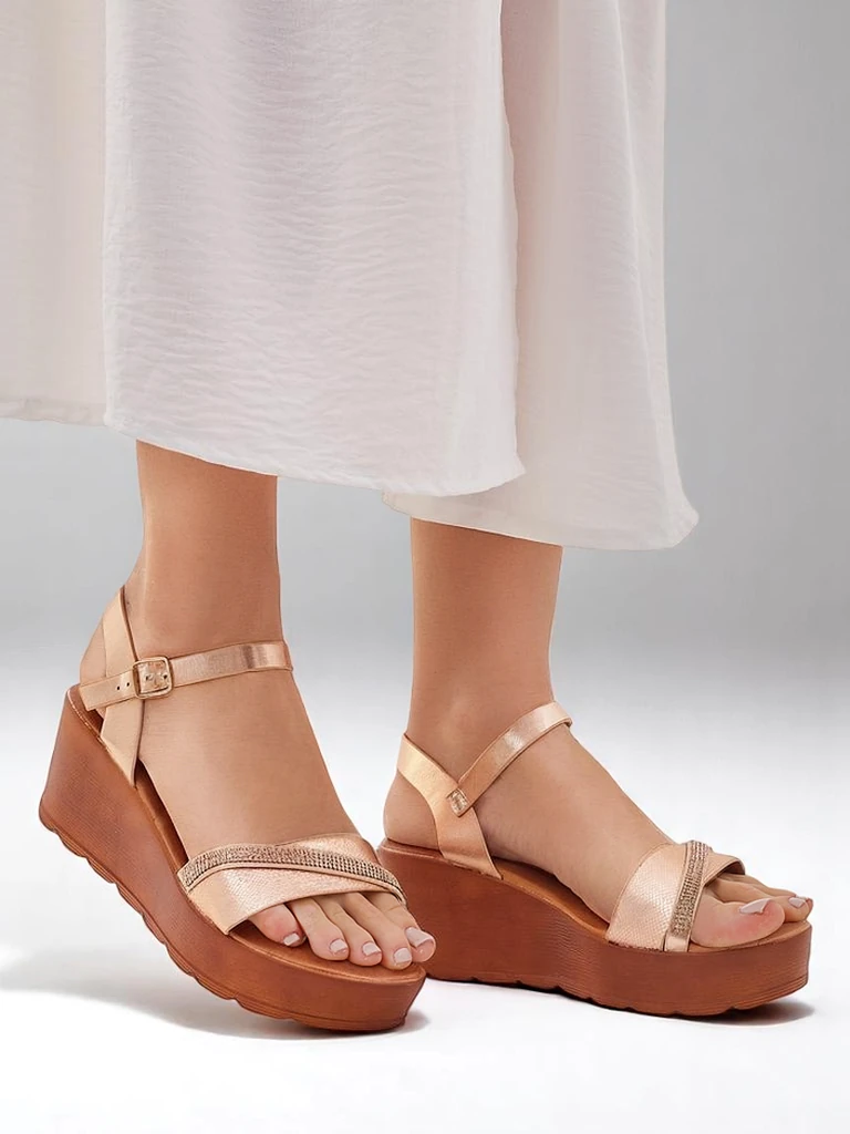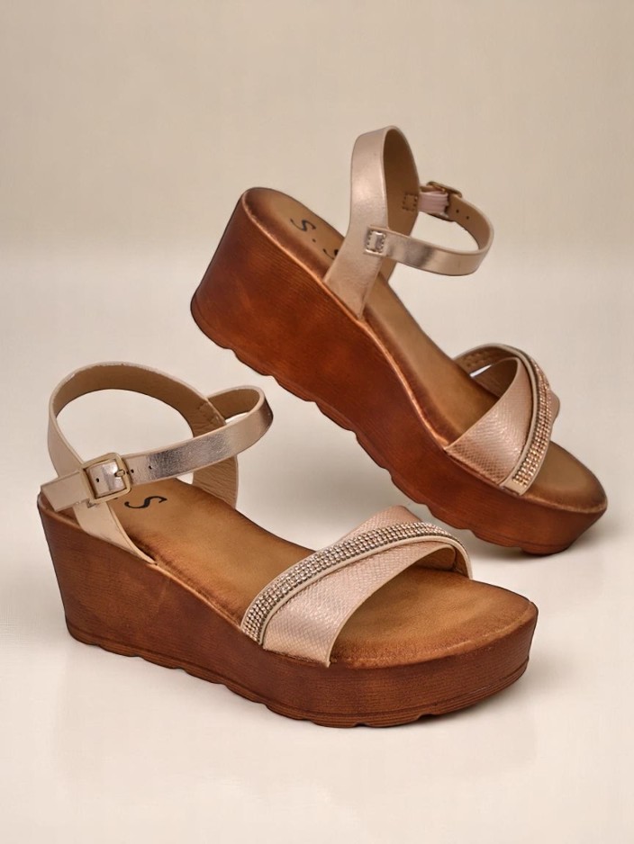 - Відкрийте для себе елегантність з сандалями Aurora Glow. Спектакулярні wedge-сандалі, прикрашені блискучими стразами та тонким блиском, ідеально підкреслюють літнє сяйво. Комбінація комфорту та розкішного вигляду – ідеально для будь-якої особливої події!