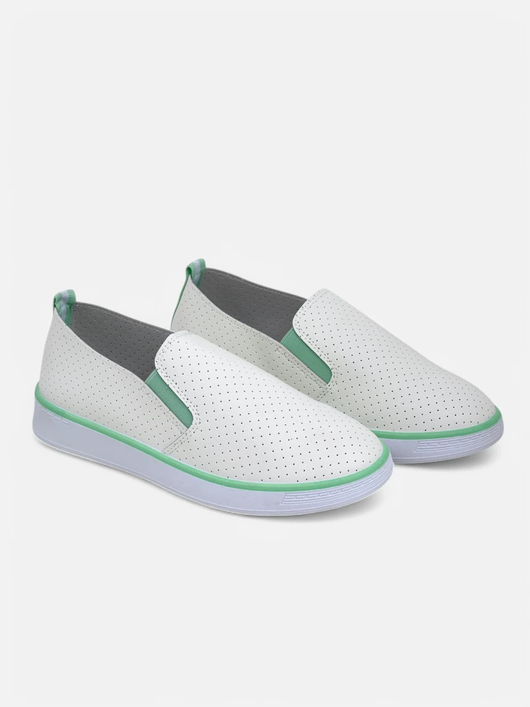 - Перфоровані жіночі спортивні сліпони з синтетичної шкіри. Оброблені тканиною. Ідеальний вибір для щоденного носіння!