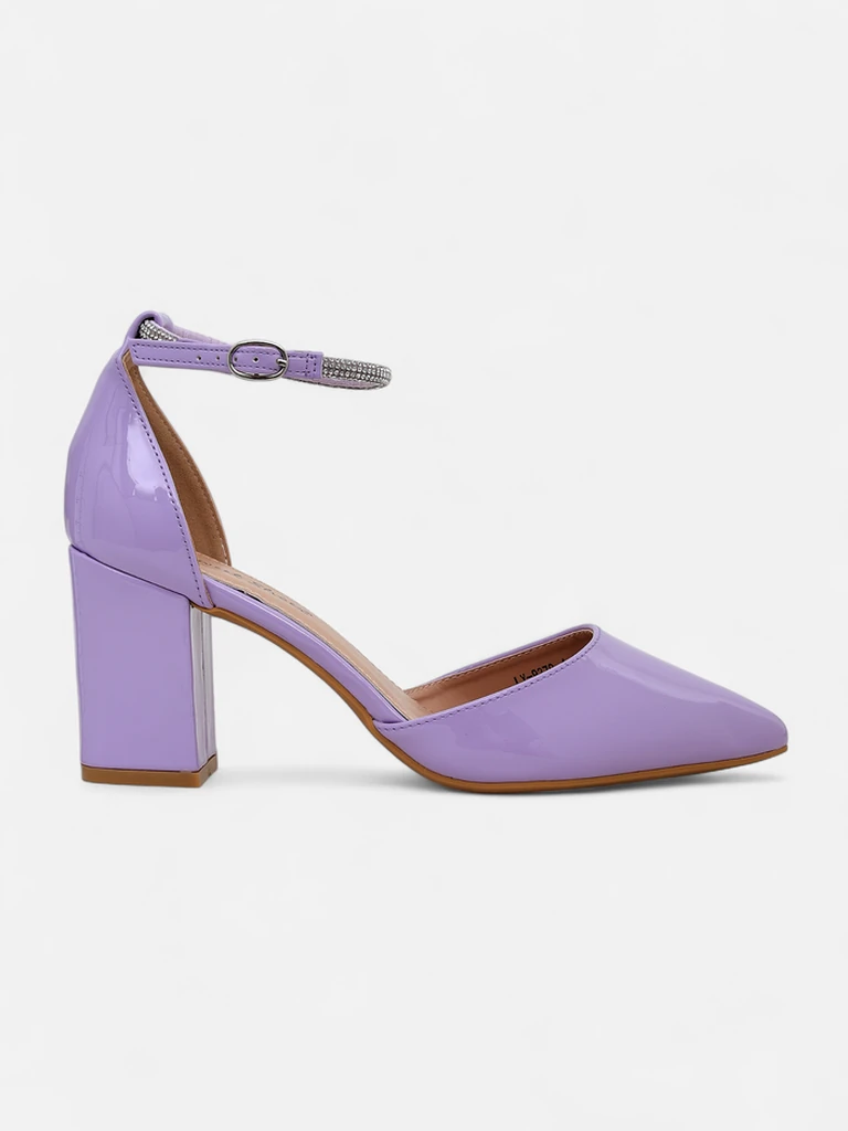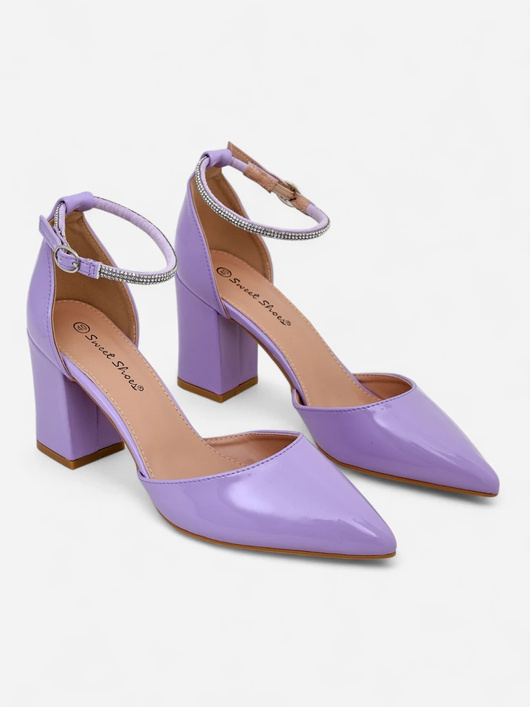 07198 Royalfashion Жіночі лаковані туфлі з ремінцем, прикрашеним стразами Furoni 12345678 Елегантні жіночі туфлі на блоці, виготовлені з лакованої еко-шкіри. Всередині взуття оброблено еко-шкірою, а вузький носок додає елегантності! Додатково прикрашений ремінець зі стразами!