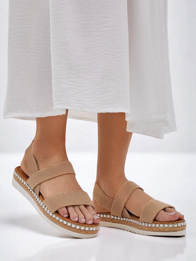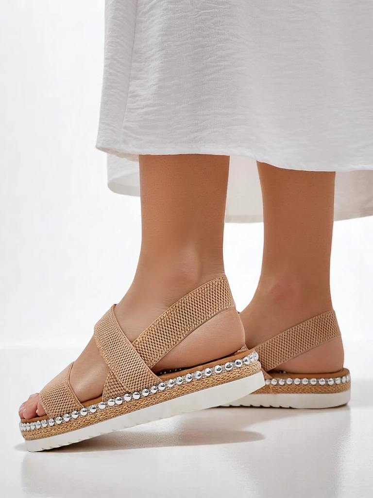 - жіночі сандалі на низькій підошві - ідеальне рішення для спекотних літніх днів. Модель виконана з тканини та еко-шкіри. Підошва оформлена декоративними стразами. Модель на плоскій підошві. Комбінація стилю та комфорту!