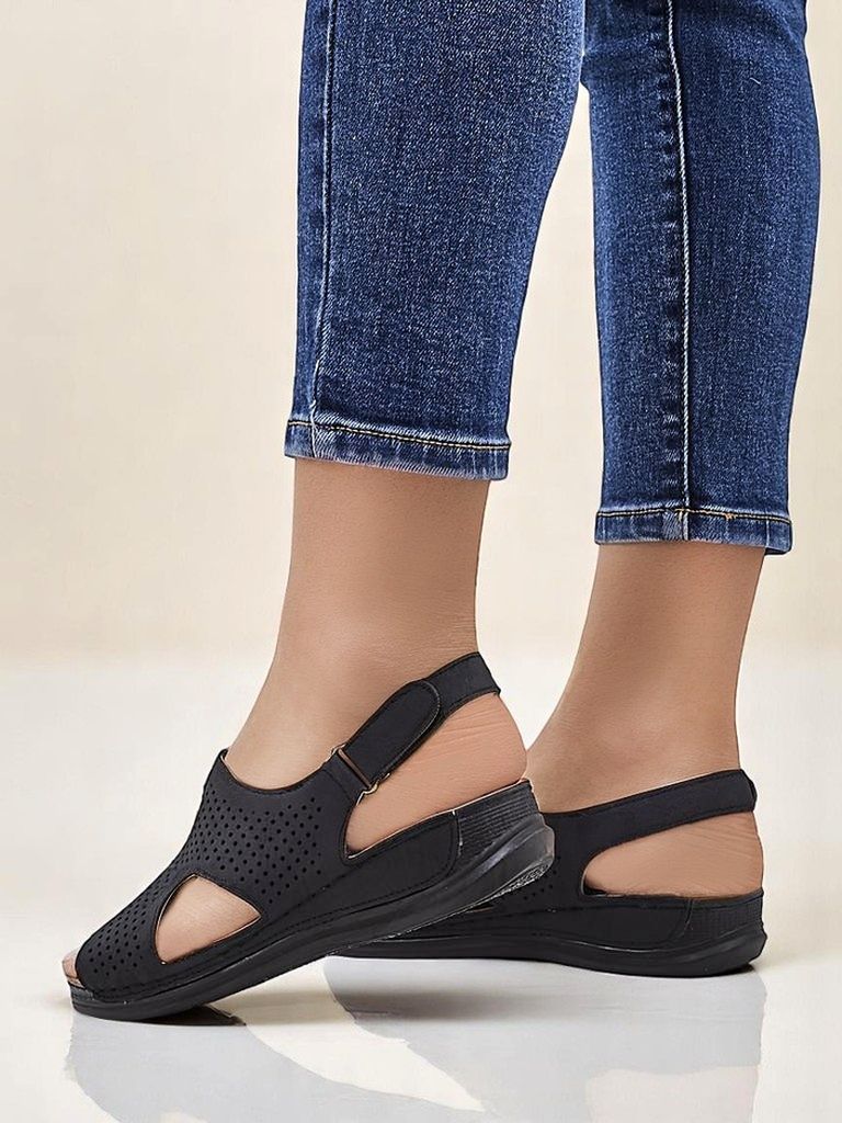 - Жіночі ажурні сандалі на низькій підошві – ідеальний варіант для спекотних літніх днів. Модель виконана з екошкіри. Взуття з регульованими ремінцями. Поєднання стилю та комфорту!