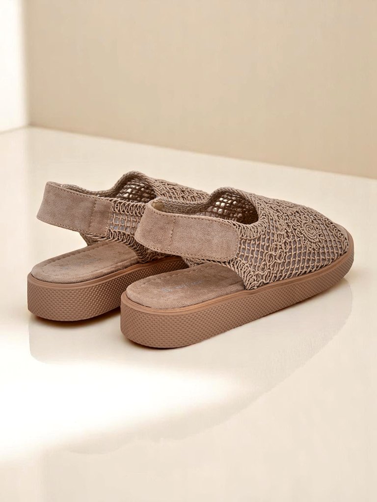 - Жіночі ажурні сандалі на низькій підошві – ідеальне рішення для спекотних літніх днів. Модель виготовлена з тканини зі екошкіряною стелькою. Взуття з регулюванням на липучці. Поєднання стилю та комфорту!