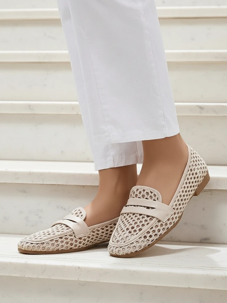 - Легкі, жіночі мокасини на плоскій підошві. Модель у стилі casual, виготовлена з плетеної тканини, устілка - екологічна шкіра. Ідеально підходить для весняних образів!
