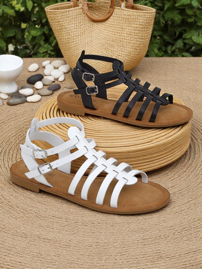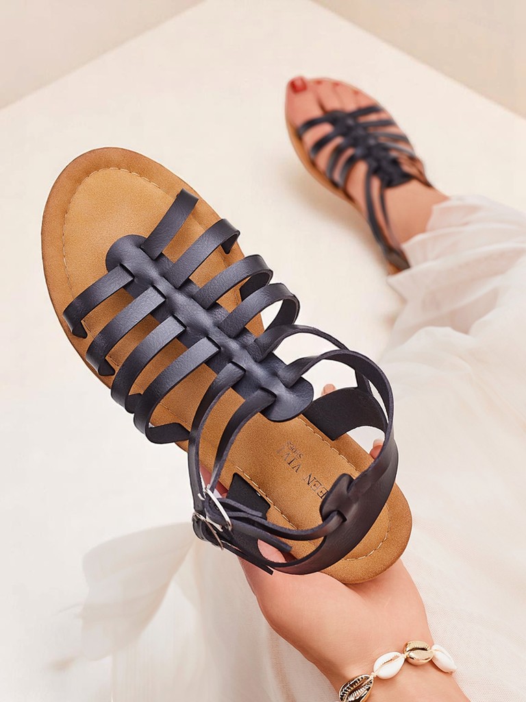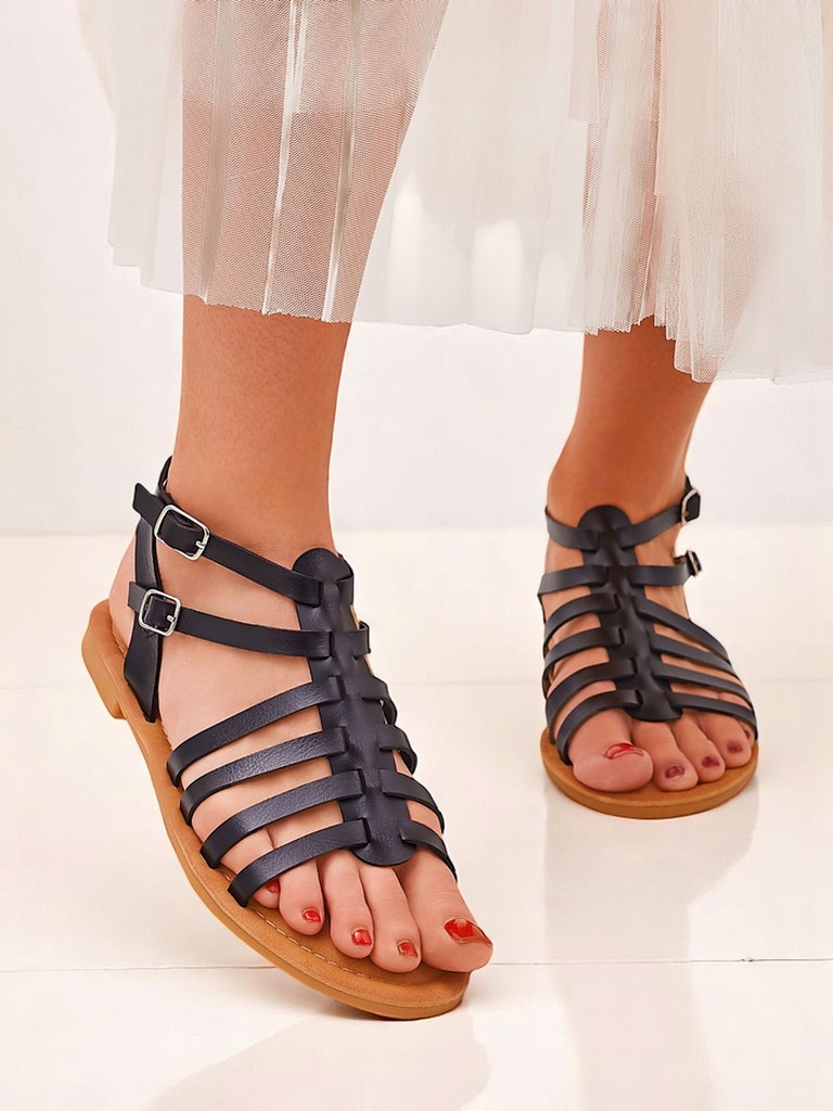 - Сандалі виготовлені з екошкіри, натхненні римським стилем. Застібка-липучка забезпечує комфорт, а елегантний дизайн додає вишуканості будь-якому образу.