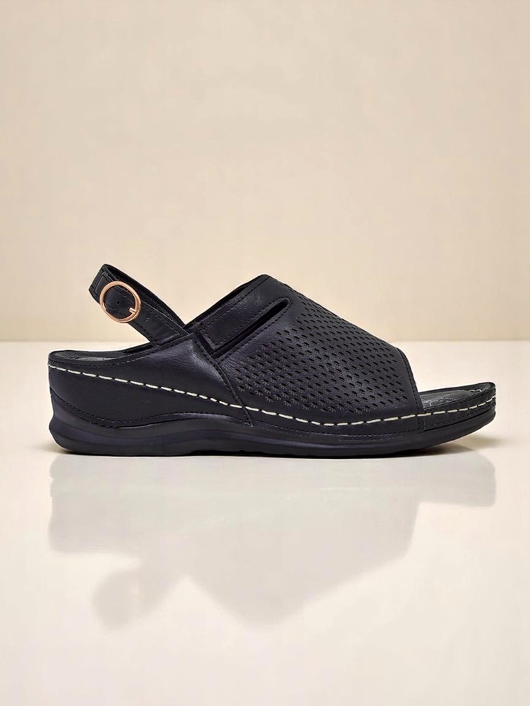 Сандалі Calcebianca - це поєднання італійського стилю, традицій античності та сучасної зручності. Виготовлені з високоякісної натуральної лицьової шкіри, вони гарантують не тільки естетичний вигляд, але й довговічність. Вирізані лазером візерунки на халяві забезпечують відмінну вентиляцію та модний, витончений візуальний ефект, який відповідає останнім тенденціям літнього взуття з легким ретро характером. Шкіряна устілка з флористичним принтом та делікатна, регульована застібка на ремінці забезпечують прилягання до індивідуальних потреб, одночасно захищаючи стопу та зміцнюючи її правильне положення.
