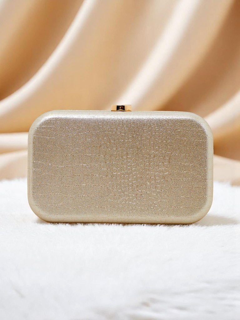- Сумка-клатч виготовлена з екошкіри, вкрита тканиною з блискучою ниткою та делікатним тисненням. Застібається на кнопку, з відстібним ланцюжком-ремінцем — поєднання елегантності та блиску.