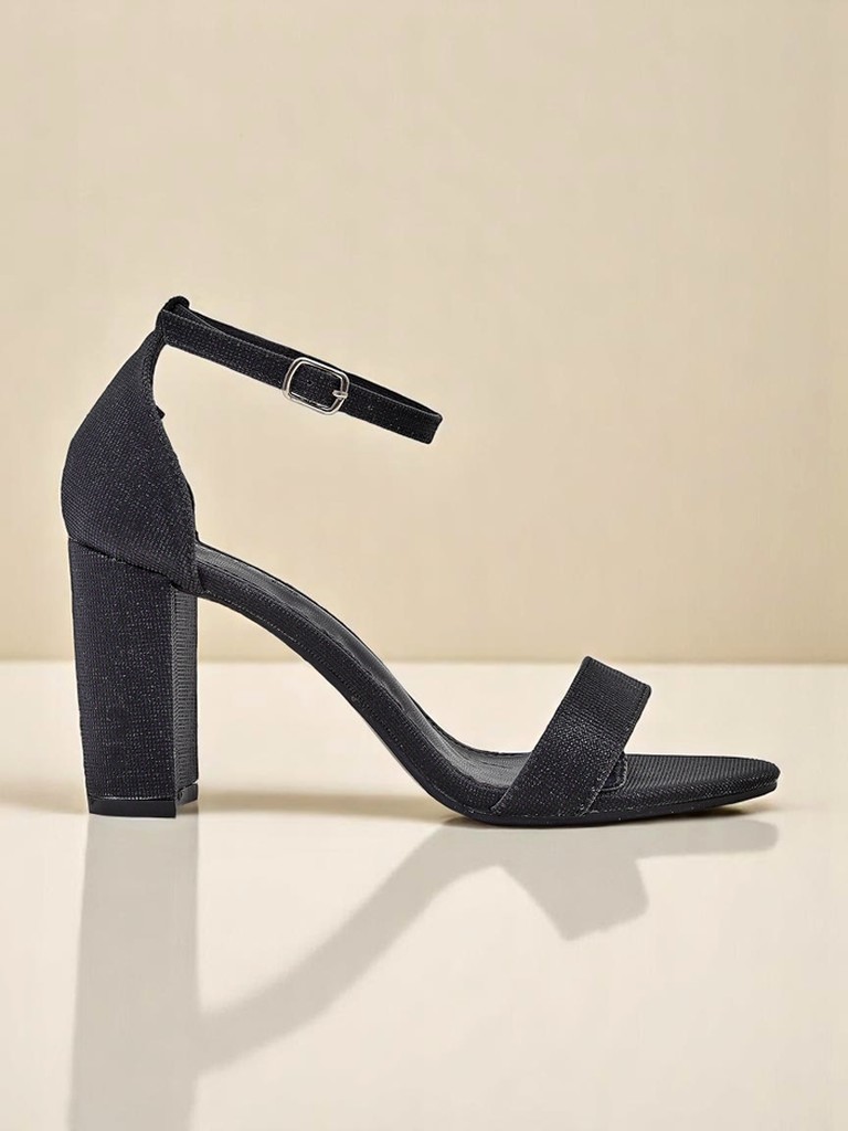 - Туфлі на високих масивних підборах із блискучої тканини. Устілка з екошкіри та застібка на пряжці забезпечують комфорт, стійкість та ефектний вигляд для будь-якої події.
