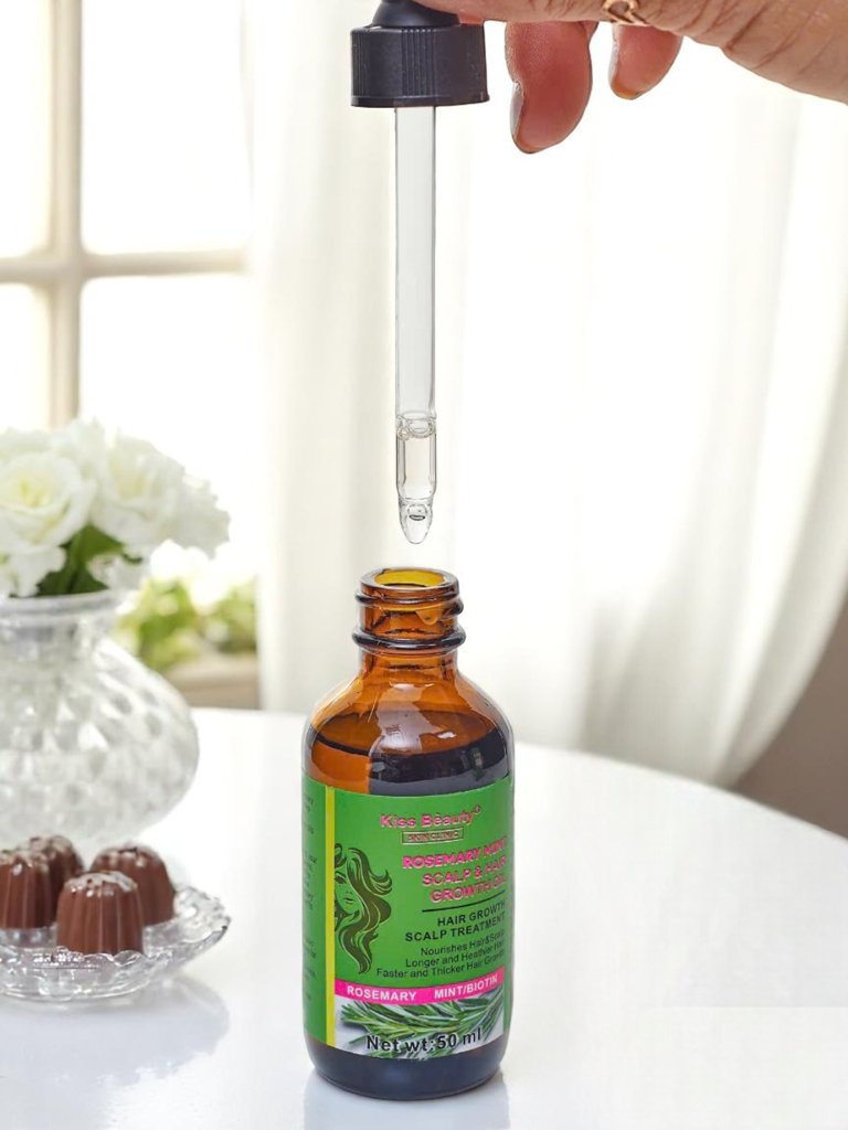 - Натуральна олія розмарину стимулює ріст волосся, зміцнює волосяні фолікули та зменшує випадіння волосся. Вона покращує кровообіг шкіри голови, надає волоссю силу, густоту та здоровий блиск.