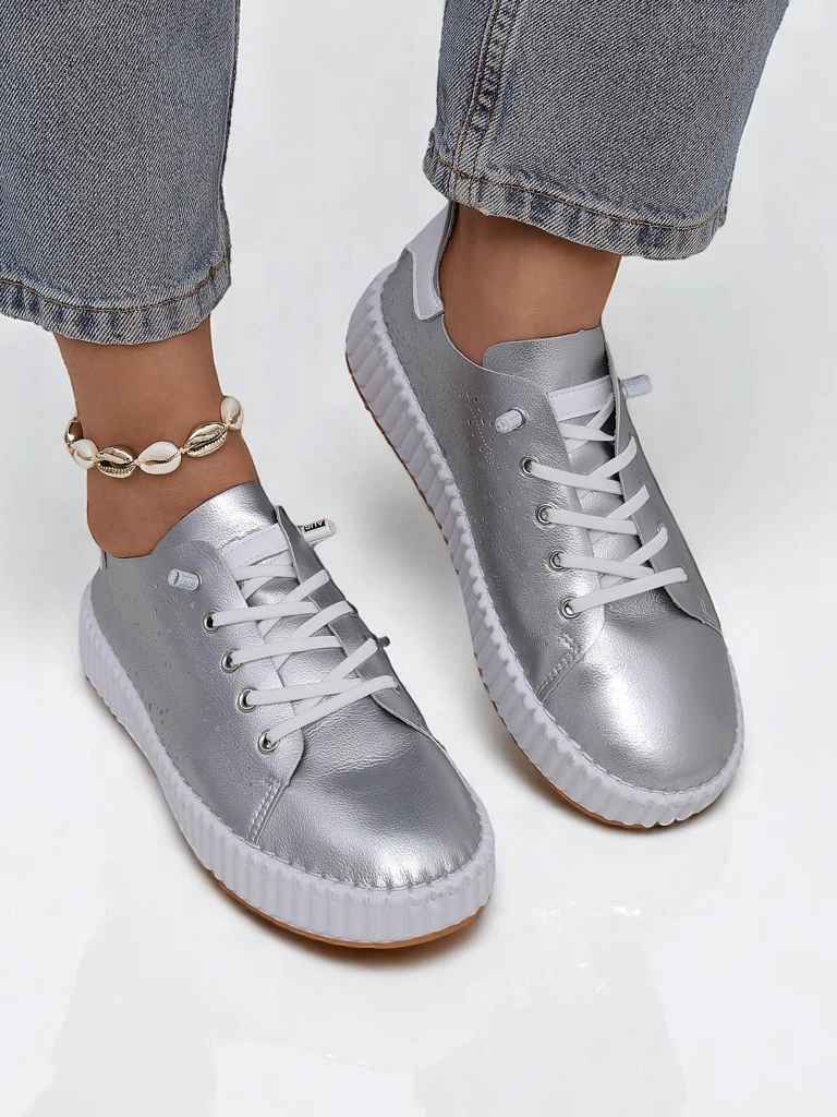 Снікерси Aurelio – це поєднання класичної білизни з елегантними вставками в карамельному відтінку та оригінальною перфорацією, натхненною італійським дизайном. Верх виготовлений з високоякісної, сертифікованої екологічної шкіри, яка не тільки стильно виглядає, але й забезпечує повітропроникність і довговічність, а також є екологічно чистою. Вона стійка до щоденних забруднень і легко підтримується в чистоті, що підтверджують норми OEKO-TEX.Внутрішня частина взуття вистелена м’якою бавовняною тканиною та дихаючою устілкою з піни EVA, що гарантує комфорт навіть під час багатогодинного носіння. Гумова підошва з делікатним протектором забезпечує відмінне зчеплення та зручність у будь-яких умовах.Найважливіші переваги Aurelio – це оригінальний, ніжний візерунок вирізів, який додає легкості та повітропроникності – ідеально підходять для теплих днів. Ви відчуєте легкість кожного кроку, оцінюючи гнучкий профіль підошви.Стилізації та поради:1. Casual look: Поєднайте снікерси Aurelio зі світлими джинсами слім і простим T-shirt. Це надійний набір для вихідних або прогулянки містом.2. Smart casual: Виберіть чіноси пастельного кольору та лляну, злегка розстебнуту сорочку – взуття підкреслить шик і свіжість стилю.3. Спортивна елегантність: Скористайтеся легінсами, топом і легкою бомбером – снікерси Aurelio чудово переламають спортивний клімат стильної міської стилізації.Зберігання та догляд: Взуття слід зберігати в сухому місці, подалі від прямих джерел тепла. Для чищення використовуйте вологу тканину або спеціальні препарати для екологічної шкіри – не використовуйте агресивні миючі засоби. У разі потреби чистіть перфорації м’якою щіткою. На взуття поширюється сервісний захист виробника.Тренди 2024: Снікерси в універсальному білому кольорі, з фантазійною перфорацією та мінімалістичними деталями, чудово вписуються в актуальну моду на зручність, мінімалізм і пастельні додатки. Aurelio – чудова пропозиція на будь-яку пору року!