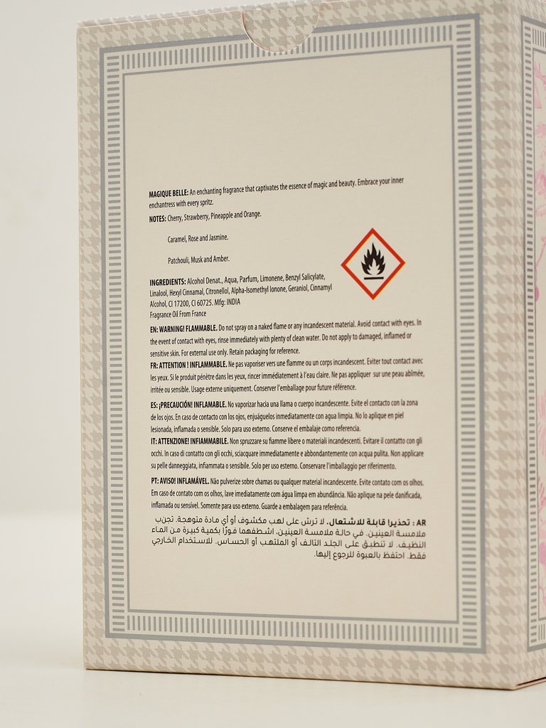 - Соковита груша та насичена чорна смородина відкривають аромат, що розквітає у серці ірисом, жасмином і квіткою апельсину. Тепла база з пачулі, ванілі, шоколаду та бобів тонка створює чуттєву, солодку та пряну ауру, ідеальну для особливих моментів.