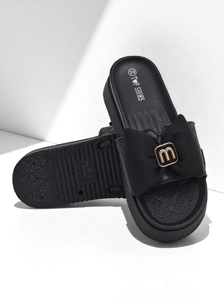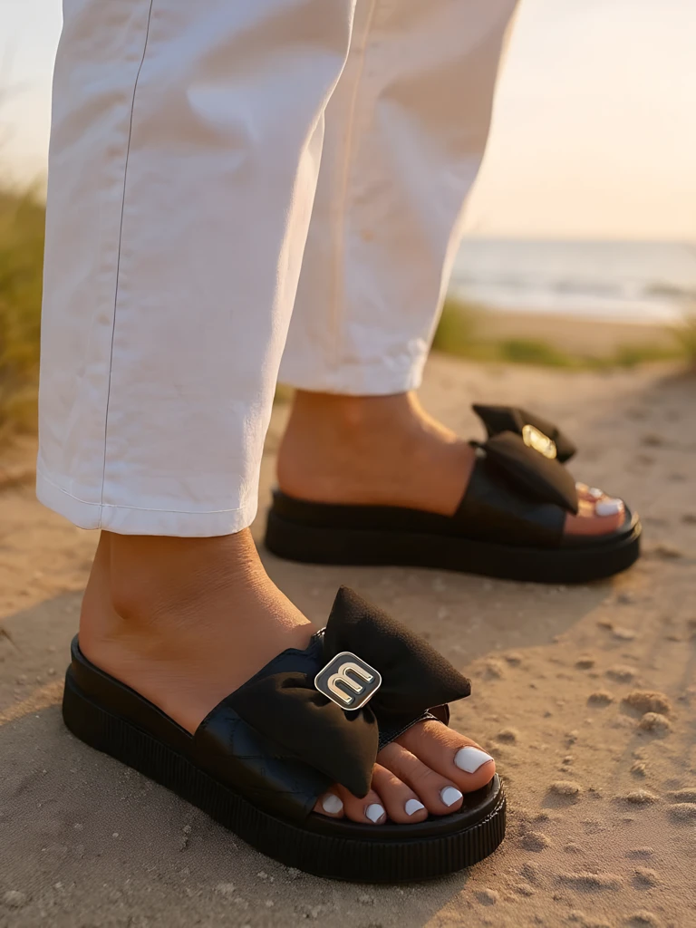 • Жіночі шльопанці на легкій гумовій платформі, ідеальні для літніх днів. Ремінець з екошкіри, прикрашений чарівним бантиком, додає дівочого шарму. Зручні, стильні та жіночні – чудовий вибір для повсякденних виходів і відпочинку на канікулах.