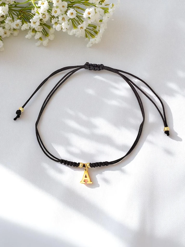 • Елегантний браслет на шнурку, що регулюється, декорований літерою. Витончений та персоналізований, ідеально підходить для щоденного носіння. Ідеальний вибір для тих, хто цінує унікальні акценти в ювелірних виробах, додає характеру будь-якому образу.