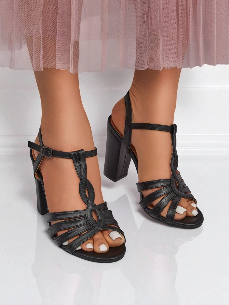 • Жіночі босоніжки на високому блочному каблуці з екошкіри з декоративними плетеними ремінцями та застібкою на пряжку. Стильні та зручні – ідеальні для літніх прогулянок, вечірок та елегантних заходів.
