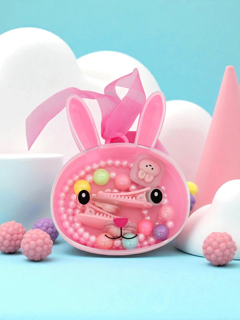 - Набір дитячих прикрас Bambina Dolce – чарівна сумочка-кролик, намистини, кліпси, ідеальний подарунок для дівчинки.